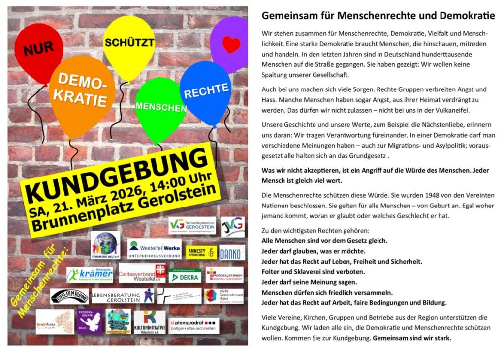 Donnerstag, 8. Mai 2025, ab 13:00 Uhr, vor dem Brunnenplatz Gerolstein